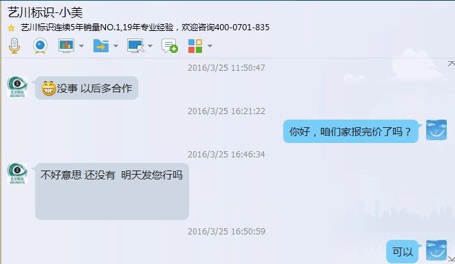 宝宝真生气了,不仅假冒长沙市艺川标识制作加工厂官网,竟然还冒充长沙市艺川标识制作加工厂的客服小美欺骗客户,侵害客户的权益,这还有王法嘛!?宝宝在这里郑重声明,艺川标识小美的联系方式只有QQ:2850133803或者800007729,电话:18684656562,其他的都属于假冒伪劣产品。我们艺川标识的官网为www.yc95598.com,400电话为:400-0011-835,还请新老客户仔细分辨,避免上当受骗造成损失!